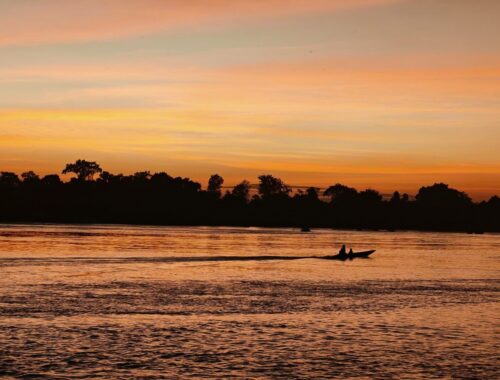 Nous étions loin d’imaginer ce qui nous attendait sur l’archipel de Si Phan Don (4000 îles, en laotien). Pourtant, la traversée en bateau aurait déjà pu nous mettre la puce à l’oreille. Le soleil disparaît et cède sa place à…