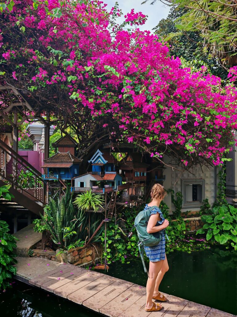 Siem Reap continue à nourrir notre soif de découvertes. La Theam’s Gallery est si charmante que les œuvres exposées sont presque desservies par le cadre. Par des mises en scène raffinées, nous avons l’impression de réaliser un voyage dans le temps. Je me pâme devant les couleurs des murs, qui me donnent envie de refaire tout mon intérieur. Je n’en parle pas à Ben, tâchons cette fois de le préserver des crises cardiaques. Avec Mia, nous mettons un point d’honneur à faire vivre l’artisanat local. Elle devient l’heureuse maman d’un élan réalisé au crochet. Bongo, de son petit nom, nous colle désormais aux basques. Il semble apprécier les randonnées à moto, comme celle qui nous amène au bord du lac de Tonlé Sap. Nous observons les pêcheurs emmener au marché leurs paniers odorants remplis de poissons. La visite du workshop des senteurs d’Angkor (savons, huiles essentielles, encens, bougies…) figure aussi parmi les incontournables.