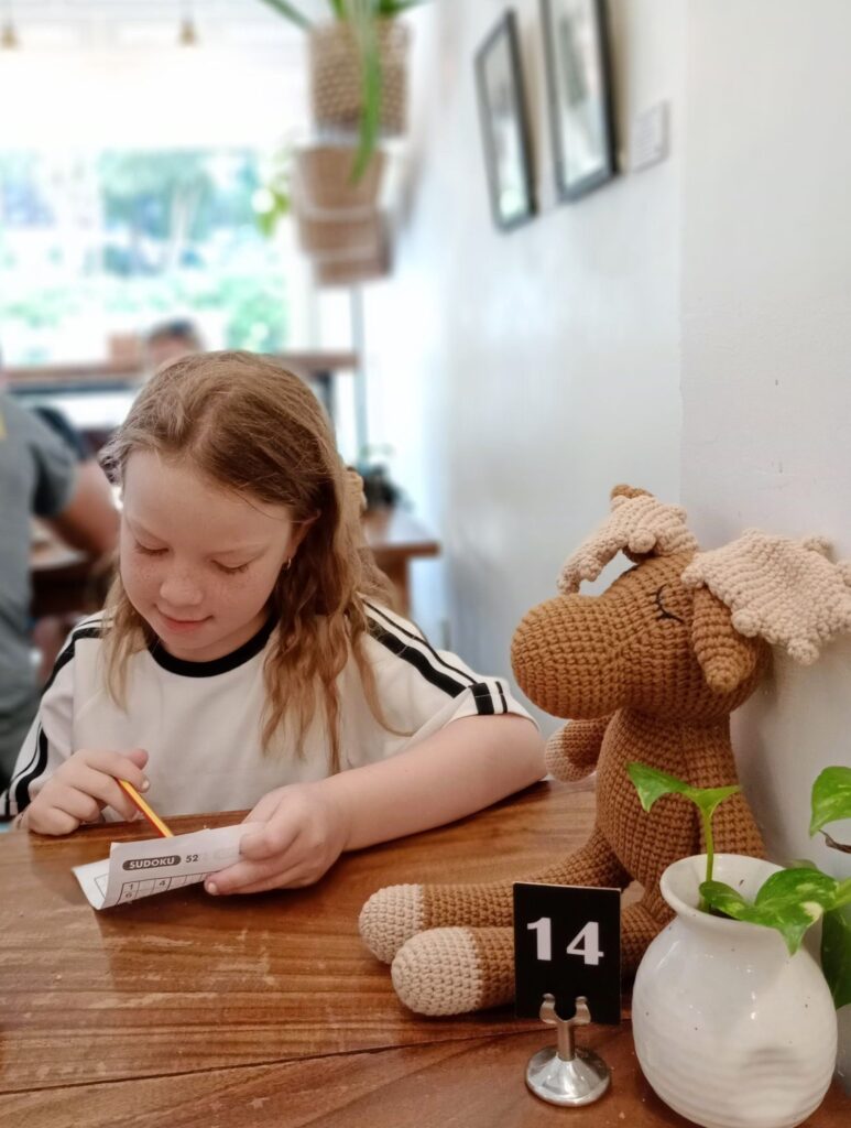 Chaque enfant commence à trouver ses marques et à apporter sa pierre à l’édifice familial. Yann, unique détenteur d’une montre (sophistiquée), excelle dans le rôle d’horloge parlante. Il est aussi celui qui nous rappelle à l’ordre lorsqu’il commence à se faire tard et qu’il éprouve le besoin d’enfiler ses charentaises. Il se fera un plaisir de personnifier l’expression « rentrer dans ses pénates » lorsque nous serons de retour en Belgique. Ce pays si merveilleux qu’il évoque chaque jour avec tendresse. Mia, quant à elle, ne cesse de faire preuve d’inventivité pour s’adapter. Elle se crée un bureau de bricolage dans un placard pour s’isoler. Quand elle aspire à avoir la paix, elle s’écrie : « Je vais dans mon cagibi! ». Une chambre à soi, comme dirait Virginia. Notons également qu’un phénomène étrange se déroule sous nos yeux ébahis : ils commencent à (bien) s’entendre. Au bord de la piscine, je peux parfois lire jusqu’à vingt-cinq pages avant de devoir interrompre une tentative de fratricide par noyade. Prudente, je n’ose pas encore parler de miracle.