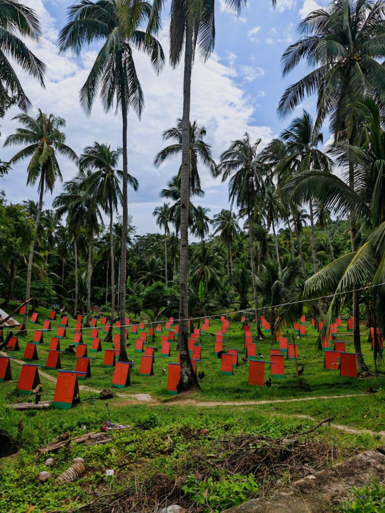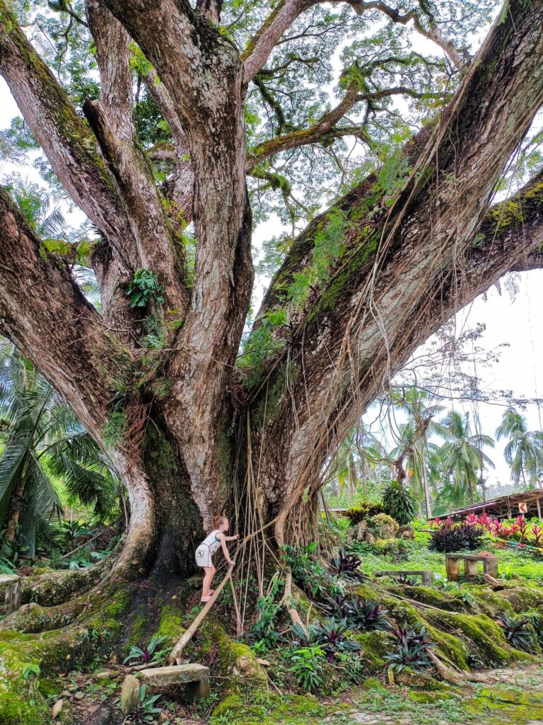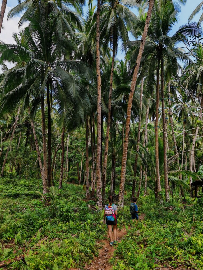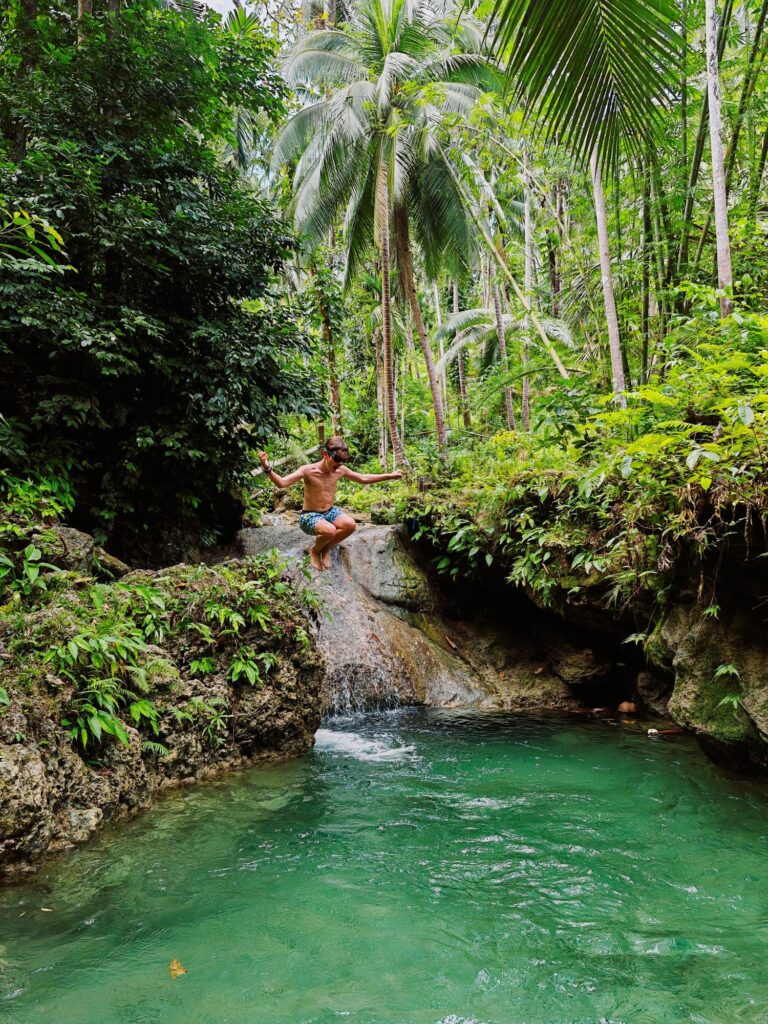 Nos excursions nous amènent à emprunter le pont qui relie notre petite île à Poro. Celle-ci a conservé, pour notre plus grand bonheur, un aspect très sauvage. Noyade dans les bananiers et les cocotiers! Se mettre en quête d’une cascade à l’aide de vagues coordonnées, sans l’ombre d’un panneau ou d’une indication, peut rapidement prendre la forme excitante d’un jeu de piste. Yann, dont l’entière existence ressemble à une métaphore de Koh Lanta, s’imagine qu’il est en train de participer à l’orientation. Après avoir serpenté parmi les arbres et sur un lit de fougères, nous choisissons de nous arrêter près d’un bassin émeraude ravissant. Un moment de communion avec la nature, si nous ne nous faisions pas dévorer par d’impitoyables moustiques. Ce n’est que bien plus tard, après avoir rejoint la civilisation et récupéré du réseau, que nous réalisons que nous n’étions pas au bon endroit. Qu’à cela ne tienne !