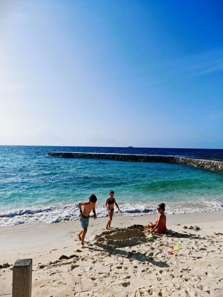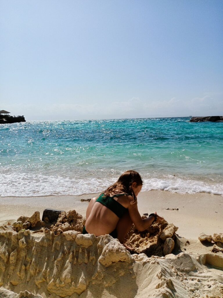 Il n’est pas rare que nos journées s’achèvent sur de jolies plages de sable fin pratiquement désertes, comme celle de Santiago. La confection de bracelets ou de barrages bat son plein, tandis que la lumière rosée s’installe. La capture (suivie de la séquestration) de bernards-l’ermite constitue, dans ce contexte, une autre activité de prédilection. Aux êtres chers qui sont nés en mars, nous transmettons nos bons vœux. Notre tranquillité n’est entravée que par les festivités qui se préparent derrière nous, volume sonore à fond et registre discutable.
