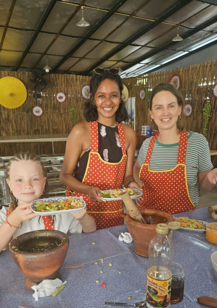 Les vacanciers sont déjà sur le point de plier bagages (tristesse). Sai nous invite à un cours de cuisine entre filles, pendant que les mecs balzinent (pléonasme). Un dernier repas partagé, un ultime coucher de soleil et on se claque la bise, le cœur rempli de souvenirs! Un choc thermique les attend, ainsi qu’un sapin illuminé. Quant à nous, nous restons sous les mêmes latitudes, direction le Cambodge. Les temples d’Angkor seront-ils aussi somptueux que dans notre imagination?