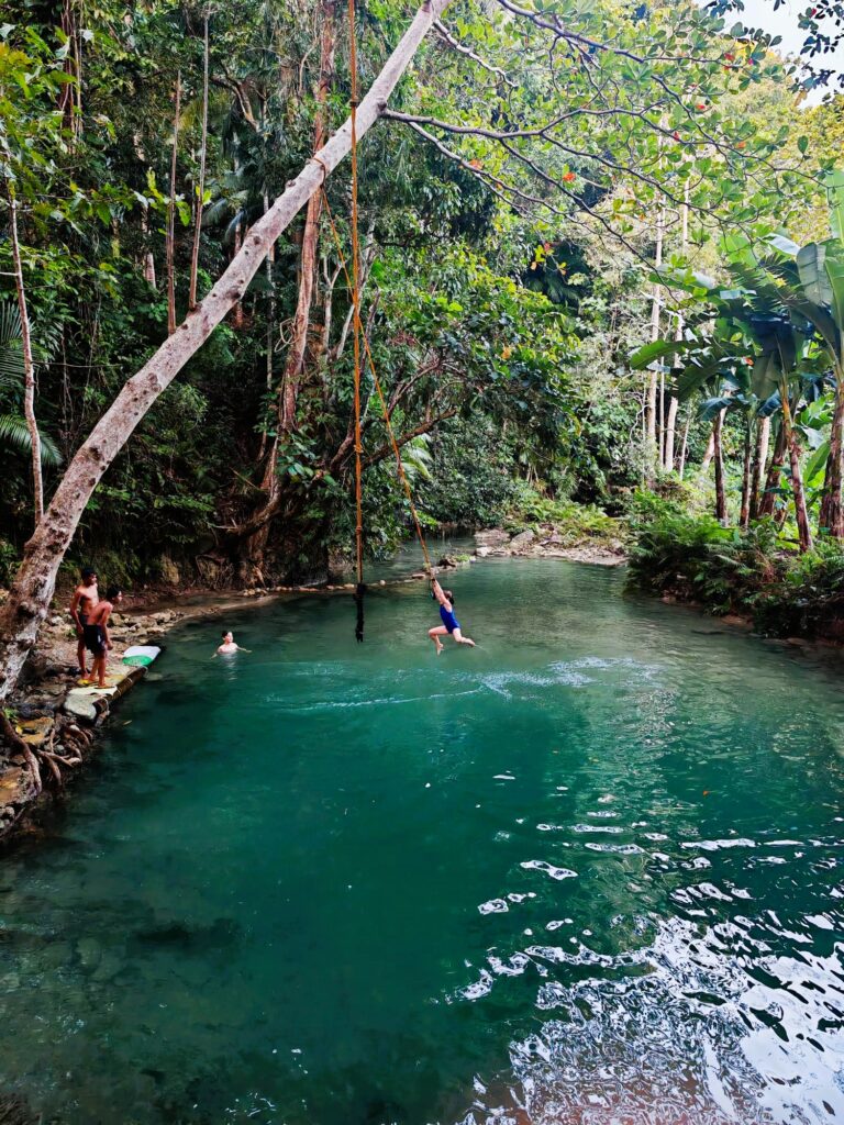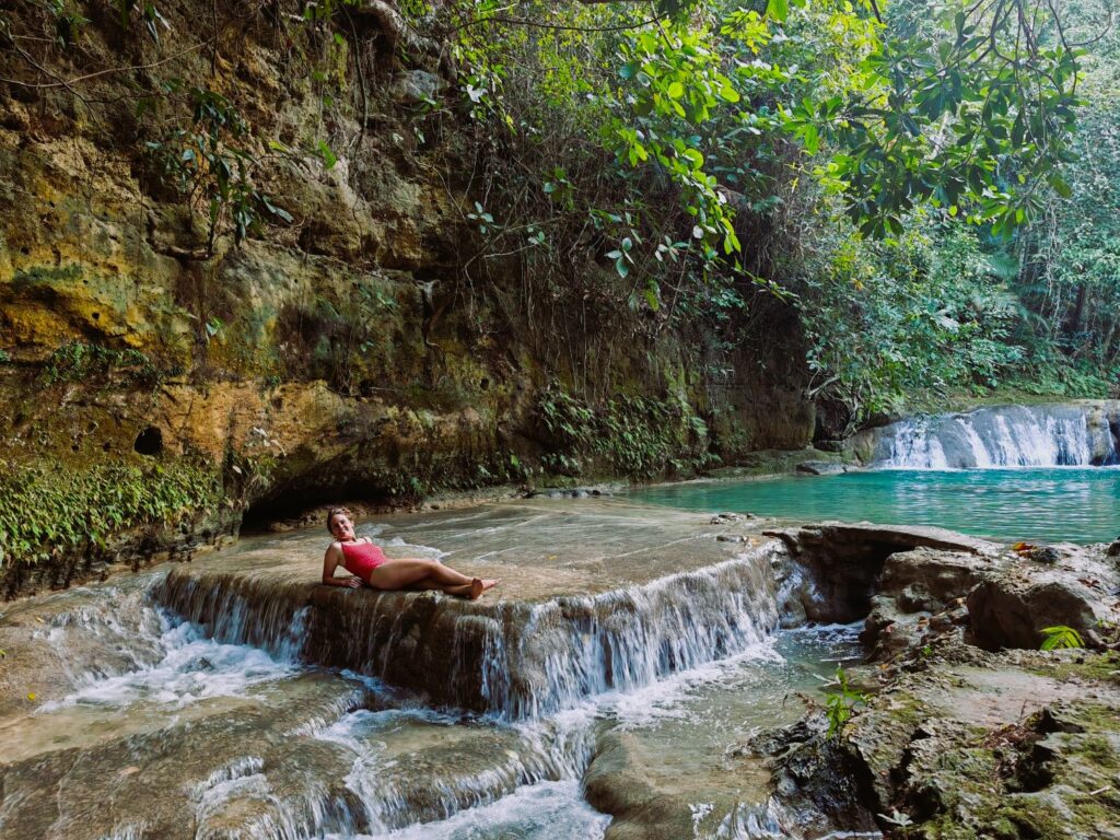 À Tubod, nous admirons toutes sortes de poissons en snorkeling. Ben s’offre une pédicure très particulière, au pied d’un arbre centenaire qui serait habité par des créatures surnaturelles (oh oui, encore un peu de mystère, on ne s’en lasse pas). Au sanctuaire des papillons, nous nous extasions aussi sur les libellules. La cascade Locong remporte les suffrages. Tout d’abord, par son accès délicieusement pittoresque. Nous nous frayons un passage entre les cabanes et le linge qui sèche, avant de traverser la jungle. Finalement, nous débouchons sur deux bassins turquoise, le clou du spectacle. Ce n’est pourtant pas terminé. Au retour, nous nous retrouvons au beau milieu d’une partie d’1, 2, 3 piano. Les garçons s’incrustent dans le jeu, ce qui provoque l’hilarité des locaux. Dans ce fragment de vie, tient toute l’essence du voyage. Ce moment suspendu prend fin à la livraison de la pêche du jour et les exclamations de surprise que nous ne parvenons pas à retenir, face à un poulpe impressionnant. Notre second logement n’a rien à envier au calme du premier. Les feux de camp sont rassembleurs et initient des soirées internationales, sous de magnifiques ciels étoilés. Ben vit un échange instructif avec un trio de Chinois, qui lui exposent leur opinion sur la marche du monde. Ils pensent, en résumé et sans détour, que l’Europe est à la ramasse.